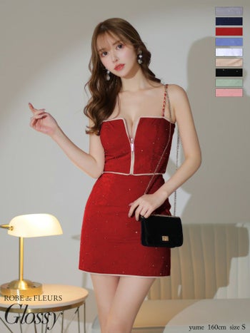 キャバドレス Glossy ROBE de FLEURS グロッシー ローブドフルール スタッズ セットアップ キルティング ジップデザイン チェーン キャミソール セクシー タイトミニドレス