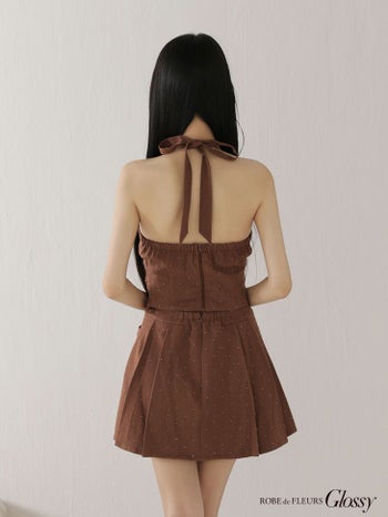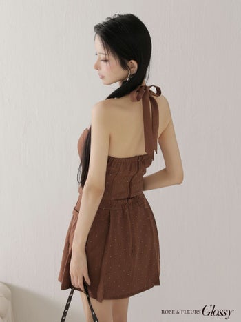 4. 【Glossy by ROBE de FLEURS/グロッシー】ホルターネック ストーン付き セットアップ セクシー ドット柄 フレアミニドレス (GL4117)