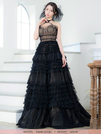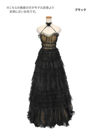 ホルターネック フラワーモチーフ ヌーディー ドット柄 チュール ティアード バースデー Aラインロングドレスのスペック表