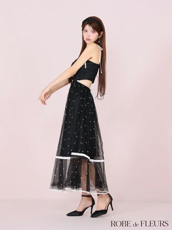4. 予約商品【4月下旬入荷予定】【ROBEdeFLEURS/ローブドフルール】ドット柄 チュール パール キャミソール ウエストカット ガーリー Aラインロングドレス (fm3298)