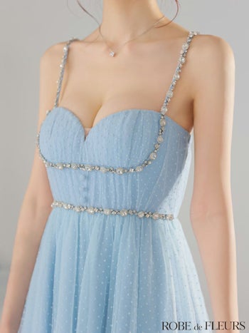 キャバドレス ROBEdeFLEURS ローブドフルール ドット柄 ビジュー チュール キャミソール フレアミニドレス