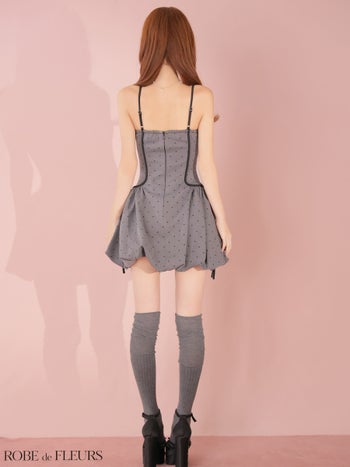 3. 【ROBEdeFLEURS/ローブドフルール】Vカット リボン ドット柄 バルーンスカート キャミソール フレアミニドレス (fm4702)