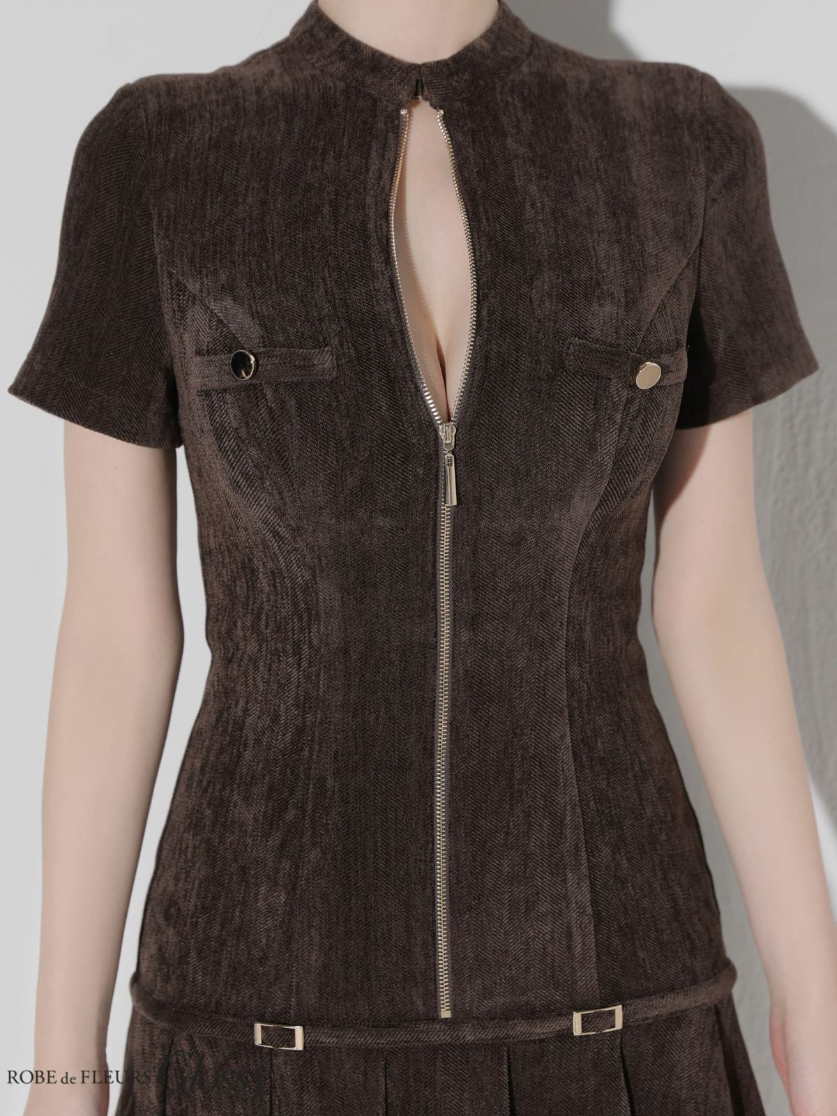 他の画像を見る XSあり!スタイルアップ効果抜群♪ 【DEA.by ROBE de FLEURS/ディア】ジップデザイン 半袖 ウエストボタン ラメツイル プリーツスカート 襟付き フレアミニドレス (DE4312) ¥ 28,380 税込 詳細を見る お気に入りに登録する