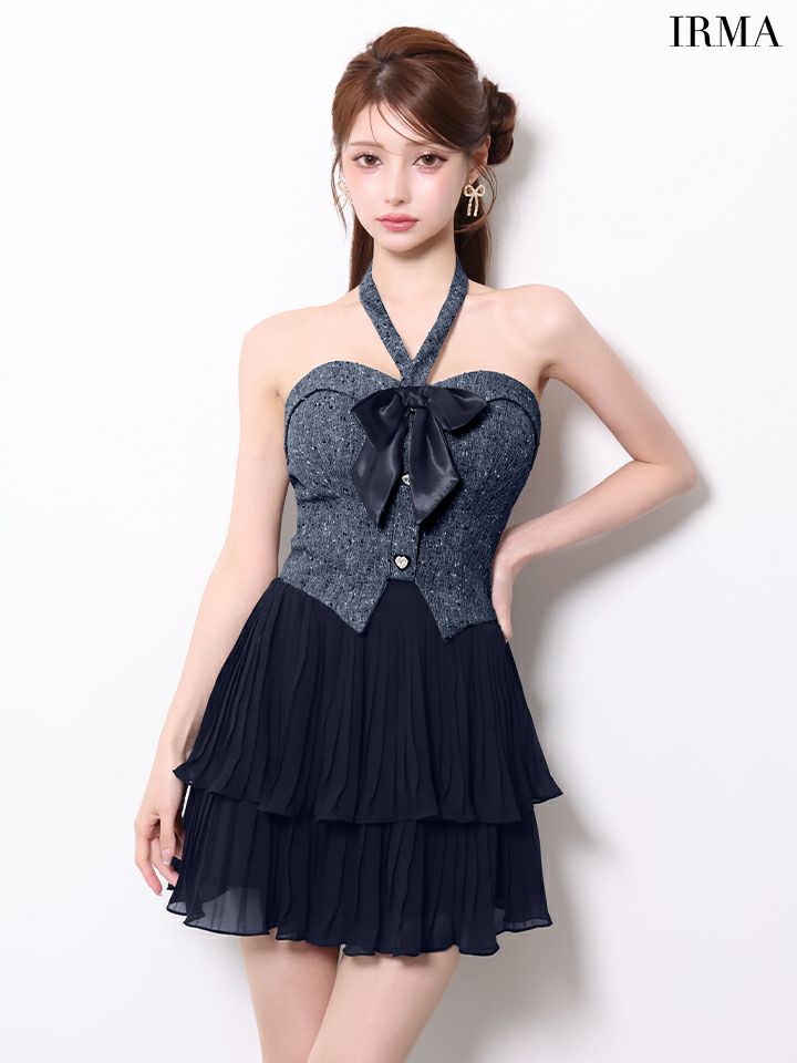 他の画像を見る XSあり!上品で愛らしい♡ 予約商品【2月中旬入荷予定】【IRMA/イルマ】ホルターネック バストリボン セットアップ フリルスカート ガーリー ツイード シフォン フレアミニドレス (61011) 予約 ¥ 30,580 税込 詳細を見る お気に入りに登録する