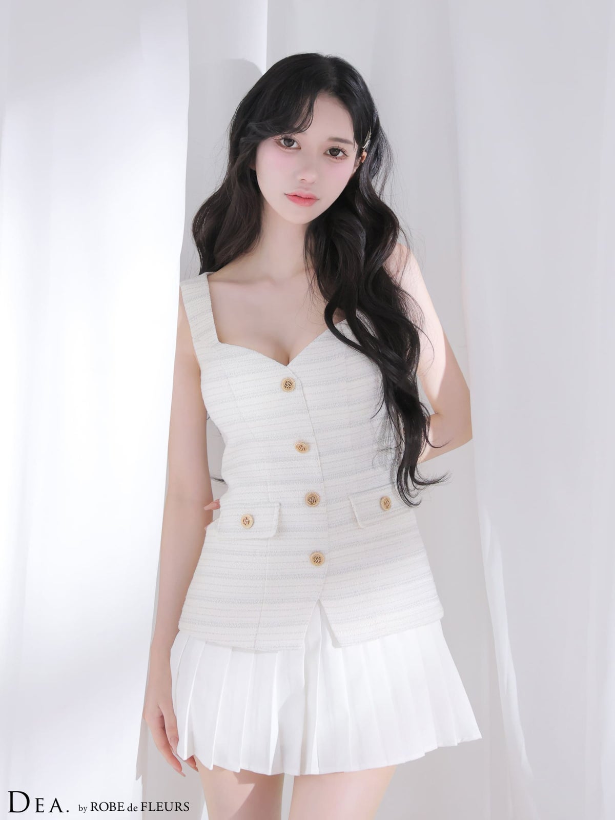 他の画像を見る XSあり!一着あれば重宝間違いなし♪ 【DEA.by ROBE de FLEURS/ディア】襟付き ゴールドボタン Vネック バイカラー ノースリーブ 台形 フレアミニドレス (DE4176) ¥ 28,380 税込 詳細を見る お気に入りに登録する
