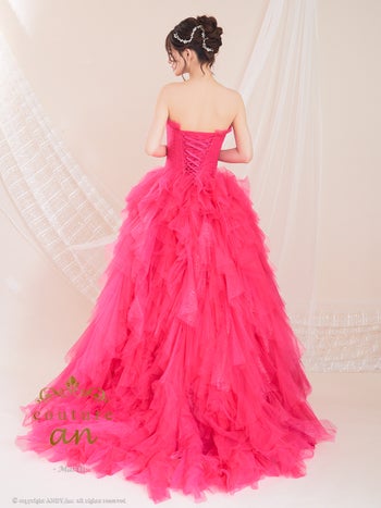3. 【couture an/クチュール アン】ワンカラー ベアトップ フリル チュール レースアップ バースデー Aラインロングドレス(aocwd051)