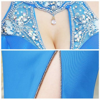 ゴージャス デコルテ ビジュー ホルターネック バックシースルー サイドスリット タイトロングドレスのイメージ画像2