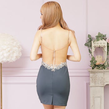 4. SALE【Angel R/エンジェルアール】オープンバックシアー ビジュー くびれ ワンカラー タイトミニドレス (AR24304)