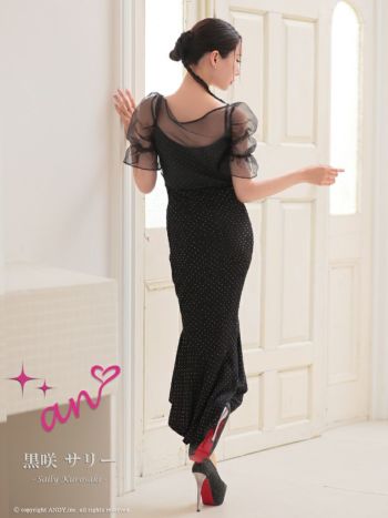 キャバドレス ロングドレス an アン 2WAY リボン パフスリーブ ジップデザイン 裾フリル テールカット マーメイドロングドレス