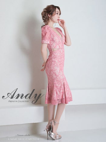 3. 【Andy/アンディ】サイドウエストカット セクシー バストシースルー パフスリーブ 刺繍レース マーメイド ひざ丈ドレス (AN-ON2761)