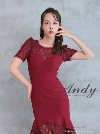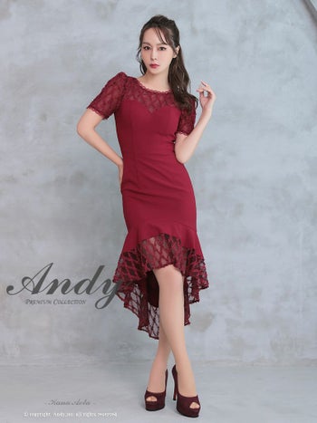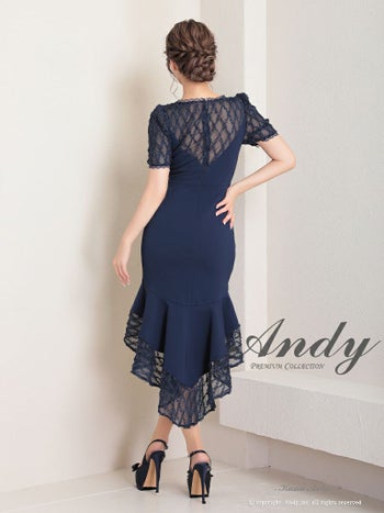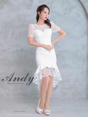 キャバドレス Andy アンディ レース ワンカラー フリル シアー 半袖 ロングテールドレス