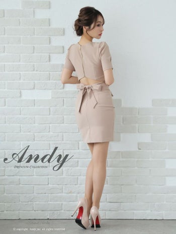 キャバドレス Andy アンディ フロントジップ ワンカラー チェーン バックリボン 半袖 タイトミニドレス