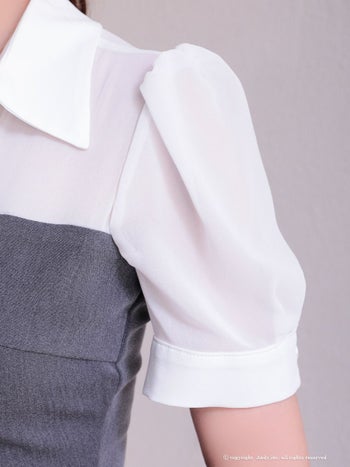 4. 【Andy/アンディ】半袖 襟付き セットアップ ビジューボタン バイカラー フレアミニドレス(anon2930)