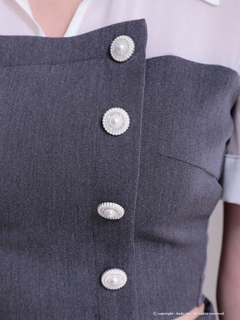 3. 【Andy/アンディ】半袖 襟付き セットアップ ビジューボタン バイカラー フレアミニドレス(anon2930)