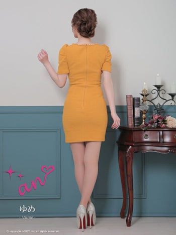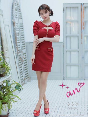 キャバドレス an アン フロントジップ ワンカラー チェーン カットアウト 半袖 タイトミニドレス
