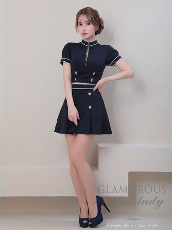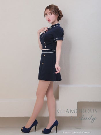 キャバドレス GLAMOROUS グラマラス ゴールドボタン セットアップ ジップデザイン バイカラーライン 半袖 タイトミニドレス