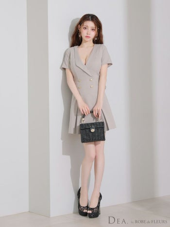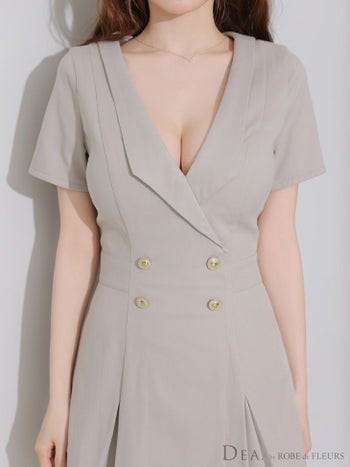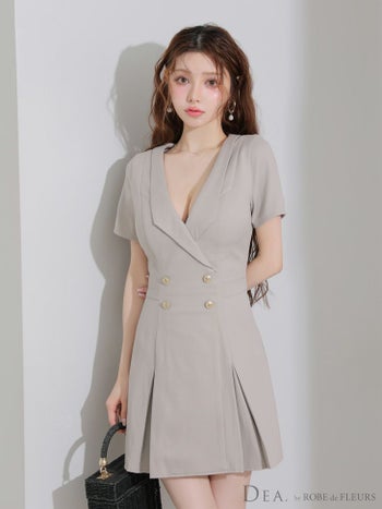 キャバドレス DEA. ROBE de FLEURS ディア ローブドフルール 襟付き シンプル 半袖 ダブルボタン プリーツ フレアミニドレス