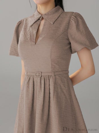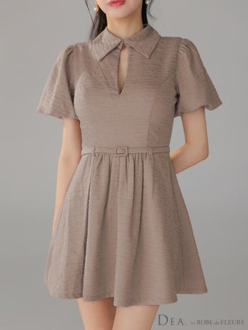 キャバドレス DEA. ROBE de FLEURS ディア ローブドフルール 襟付き ワッフル素材 半袖 ウエストベルト クラシカル ワンカラー フレアミニドレス