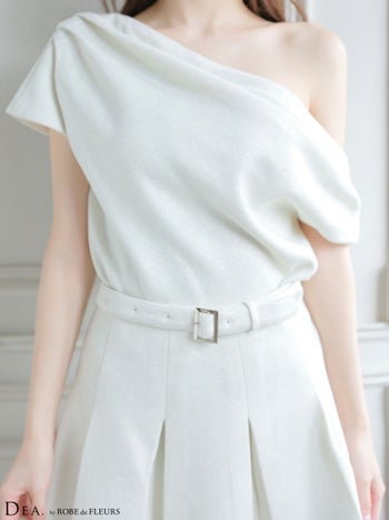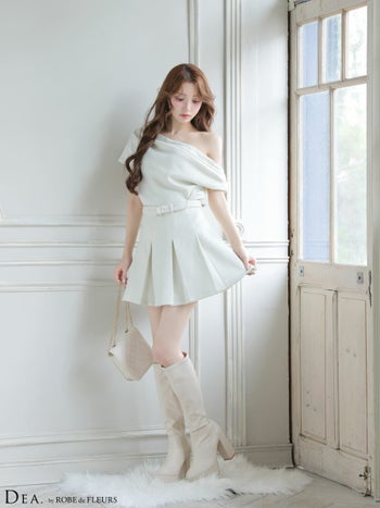 4. 【DEA.by ROBE de FLEURS/ディア】オフショルダー ドレープ セットアップ ウエストベルト 半袖 フレアミニドレス (DE4606)