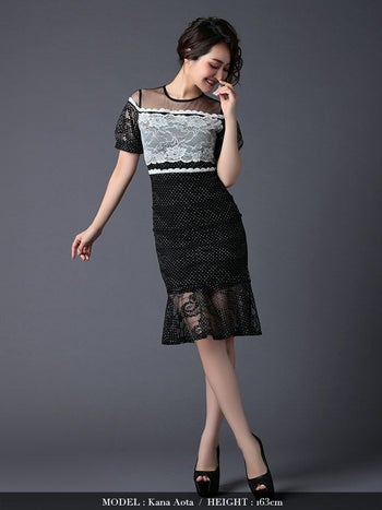 LaLatulle ララチュール キャバドレス ドットレース×マーメイドスカートタイトミニドレス(1color)(S/M/L/XL)