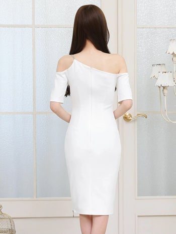 4. 【Veautt/ヴュート】半袖 ジップデザイン アシンメトリー セクシー ワンショルダー バストカット 膝丈ドレス (VT032504)