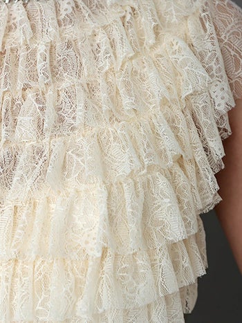 4. 【Veautt/ヴュート】フリル ビジュー 半袖 エレガント ハイネック フロントレース 膝丈ドレス (VT082520)