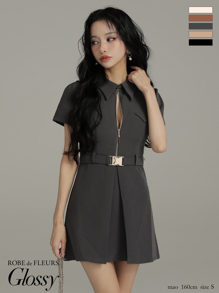 他の画像を見る XS~Lあり!モード感漂うミニワンピ♪ 【Glossy by ROBE de FLEURS/グロッシー】ウエストベルト ワンカラー 半袖 ジップデザイン 襟付き フレアミニドレス (GL4617) ¥ 28,380 税込 詳細を見る お気に入りに登録する