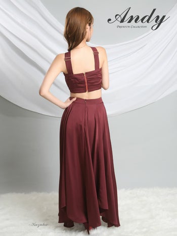 3. 【Andy/アンディ】クロスデザイン ホルターネック ウエストカット バックカット サテン アシンメトリー Aラインロングドレス(anok3008)