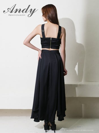 キャバドレス Andy クロスデザイン ホルターネック ウエストカット バックカット サテン アシンメトリー Aラインロングドレス