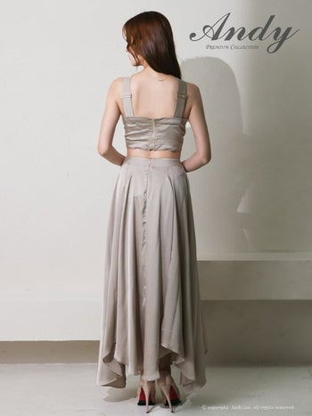 キャバドレス Andy クロスデザイン ウエストカット ホルターネック バックカット サテン アシンメトリー Aラインロングドレス