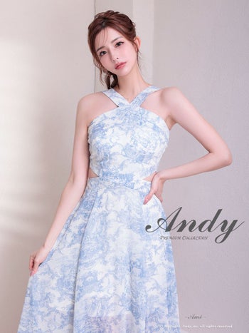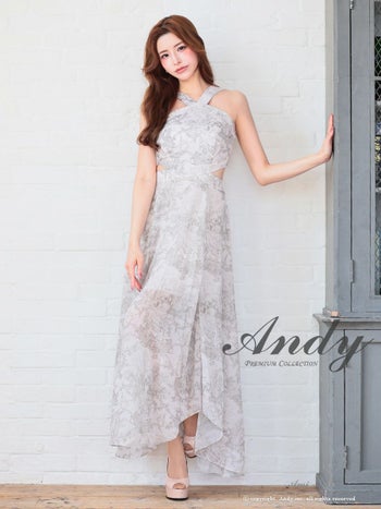 3. 【Andy/アンディ】ホルターネック ウエストカット シースルー ニュアンス Aラインロングドレス(anon2925)