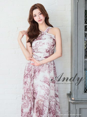4. 【Andy/アンディ】ホルターネック ウエストカット シースルー ニュアンス Aラインロングドレス(anon2925)