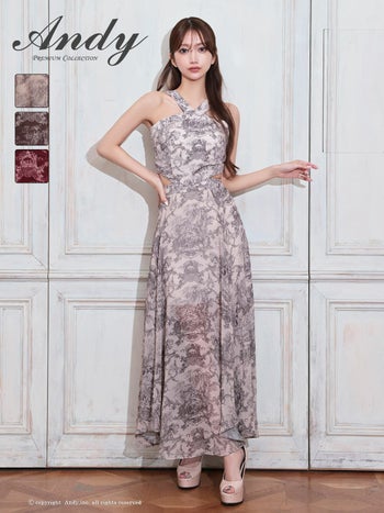 3. 【Andy/アンディ】ウエストカット ホルターネック クラシカル シアー Aラインロングドレス(anon3015)