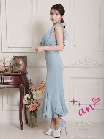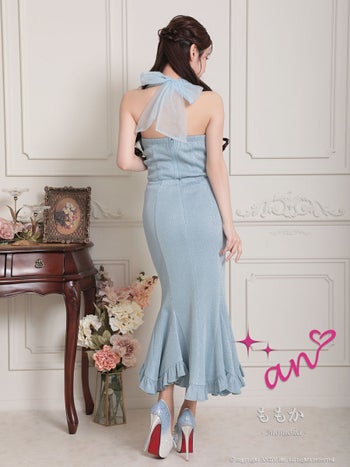 キャバドレス マーメイドロングドレス an アン セットアップ ホルターネック ラインストーン ワンカラー バックリボン ジップデザイン