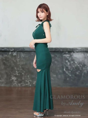 カットアウトから覗く美脚がとってもセクシー♡ 【GLAMOROUS/グラマラス】ラメ ワンカラー ジップデザイン カットアウト ストレッチ ホルターネック マーメイドロングドレス(gmsv834)