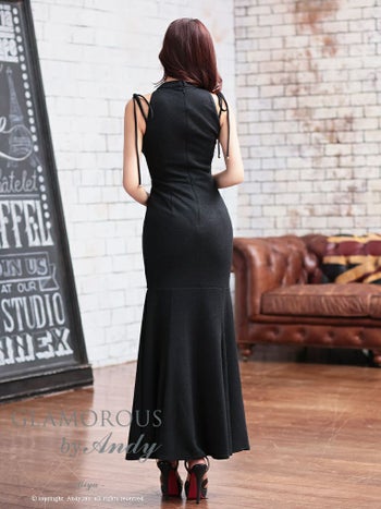 キャバドレス ロングドレス GLAMOROUS グラマラス ラメ ワンカラー ジップデザイン カットアウト ストレッチ ホルターネック マーメイドロングドレス