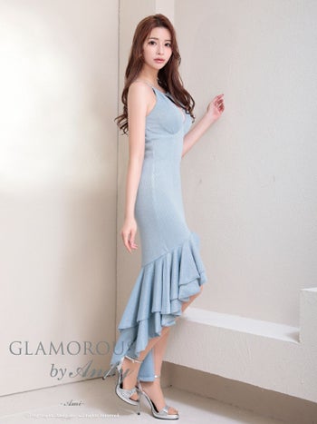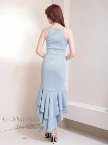 XSあり!美脚効果抜群☆ 【GLAMOROUS/グラマラス】チェーン ホルターネック フリル ラメ ワンカラー ロングテールドレス(gmsv865)