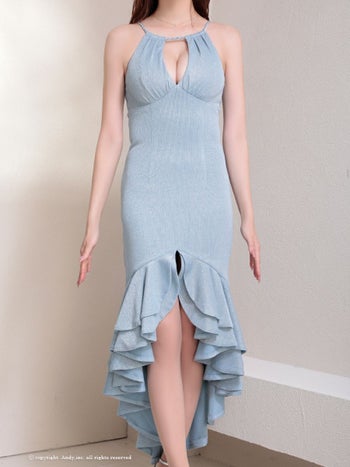 4. 【GLAMOROUS/グラマラス】チェーン ホルターネック フリル ラメ ワンカラー ロングテールドレス(gmsv865)