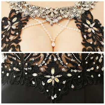 XSあり!煌めくビジューが思わず目を惹く☆ 【Angel R/エンジェルアール】アメリカンスリーブ バストカットデコルテビジュータイトロングドレス (AR23843)