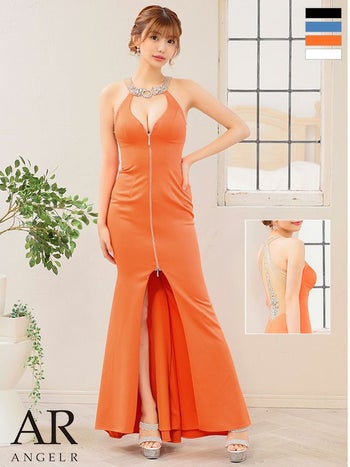 大人の派手やかさ溢れる一着☆ 【Angel R/エンジェルアール】バックメッシュビジュー ホルターネック ジップデザイン タイトロングドレス (AR24328)