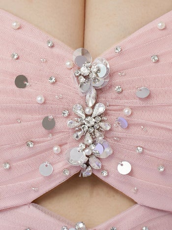 4. 【Angel R/エンジェルアール】ホルターネック フロントビジュー ウエストカット フリル メッシュ ヘムライン ネックリボン Aラインロングドレス (AR26808)