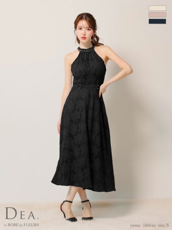 3. 【DEA.by ROBE de FLEURS/ディア】エレガント ホルターネック ウエストベルト ネックリボン レース Aラインロングドレス (DE3198)