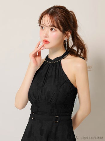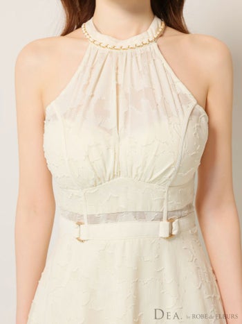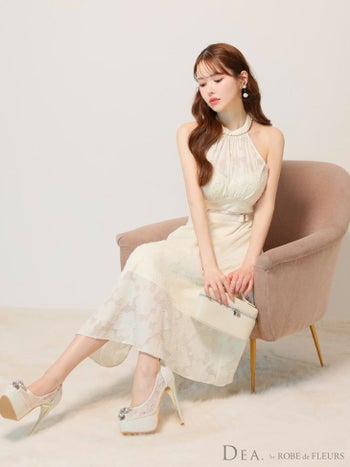 4. 【DEA.by ROBE de FLEURS/ディア】エレガント ホルターネック ウエストベルト ネックリボン レース Aラインロングドレス (DE3198)