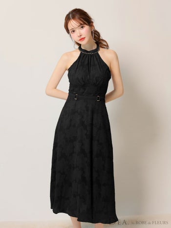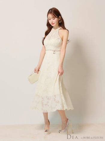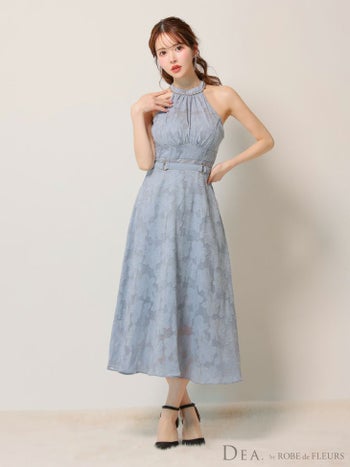 3. 【DEA.by ROBE de FLEURS/ディア】ホルターネック ウエストベルト ネックリボン レース エレガント Aラインロングドレス (DE3198)