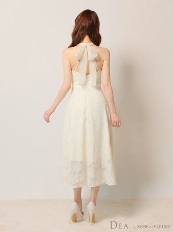 4. 【DEA.by ROBE de FLEURS/ディア】ホルターネック ウエストベルト ネックリボン レース エレガント Aラインロングドレス (DE3198)