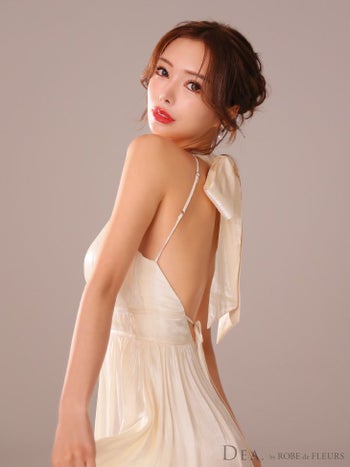 XS~Lあり!背中のカットデザインで肌見せ★ 【DEA.by ROBE de FLEURS/ディア】ホルターネック サテン リボン エレガント バストカット Aラインロングドレス (DE3366)