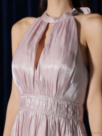 4. 【DEA.by ROBE de FLEURS/ディア】ホルターネック サテン リボン エレガント バストカット Aラインロングドレス (DE3366)