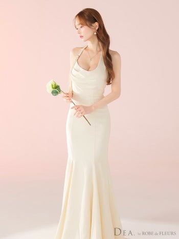 4. 【DEA.by ROBE de FLEURS/ディア】ドレープ ワンカラー シンプル ホルターネック マーメイドロングドレス (DE3373)