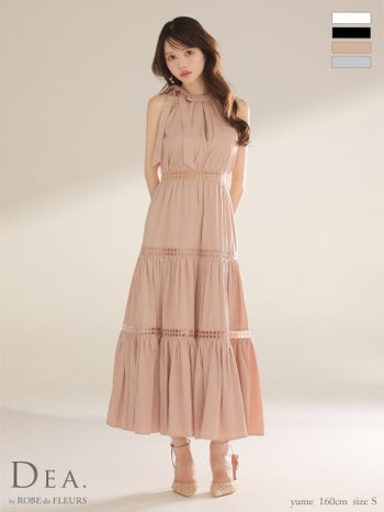 キャバドレス DEA. ROBE de FLEURS ディア ローブドフルール ホルターネック リボンタイ エレガント ワンカラー スカラップレース Aラインロングドレス