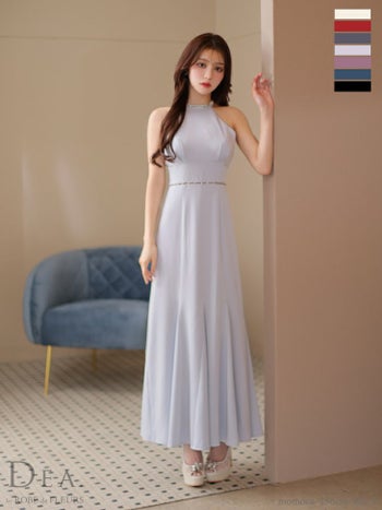 4. 予約商品【2月上旬入荷予定】【DEA.by ROBE de FLEURS/ディア】ホルターネック バックオープン サテン ビジュー エレガント Aラインロングドレス(DE3505)